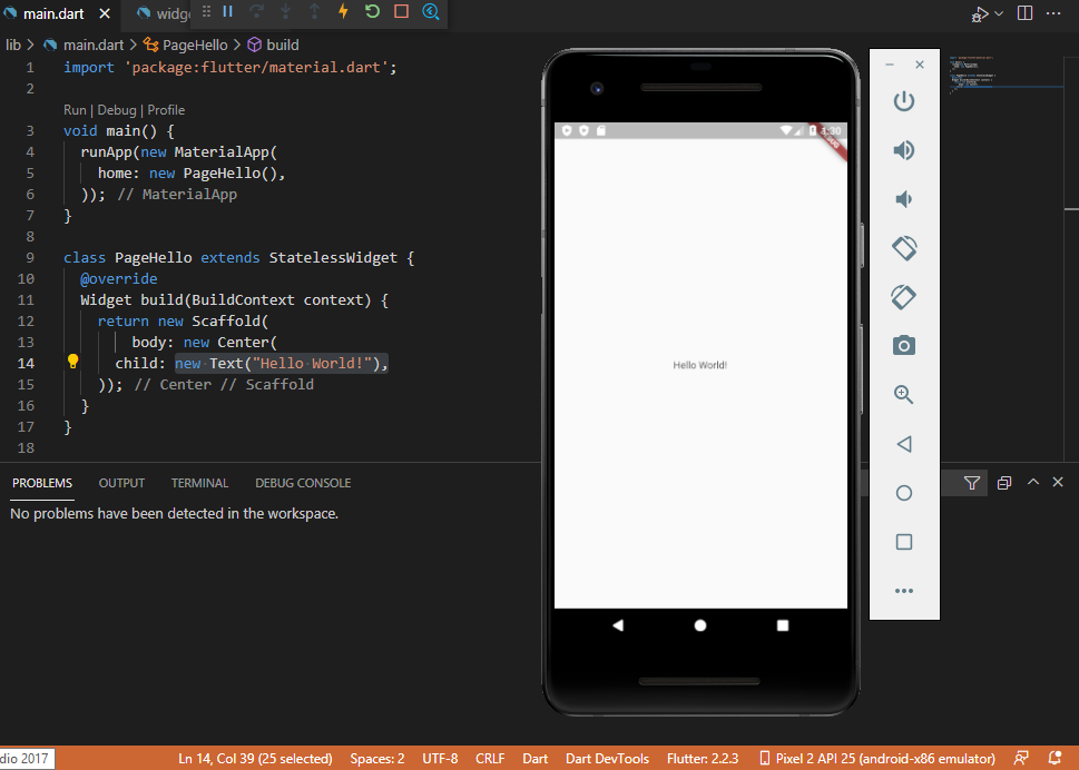Setelah mempersiapkan semua yang diperlukan untuk memulai flutter development. Kita coba membuat sebuah aplikasi Hello World menggunakan flutter ini.